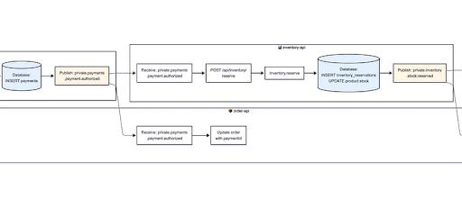 - **Event Publication**: (e.g., `Publish: private.ordering.order.placed`)