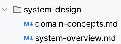 The domain concepts file explains the entities in the system. Very brief explanation. The system overview file explains the relationship between this codebase and other repositories, which is crucial. Again, it’s very light—a bullet list of repository names and one or two sentences describing their relationship to this one.